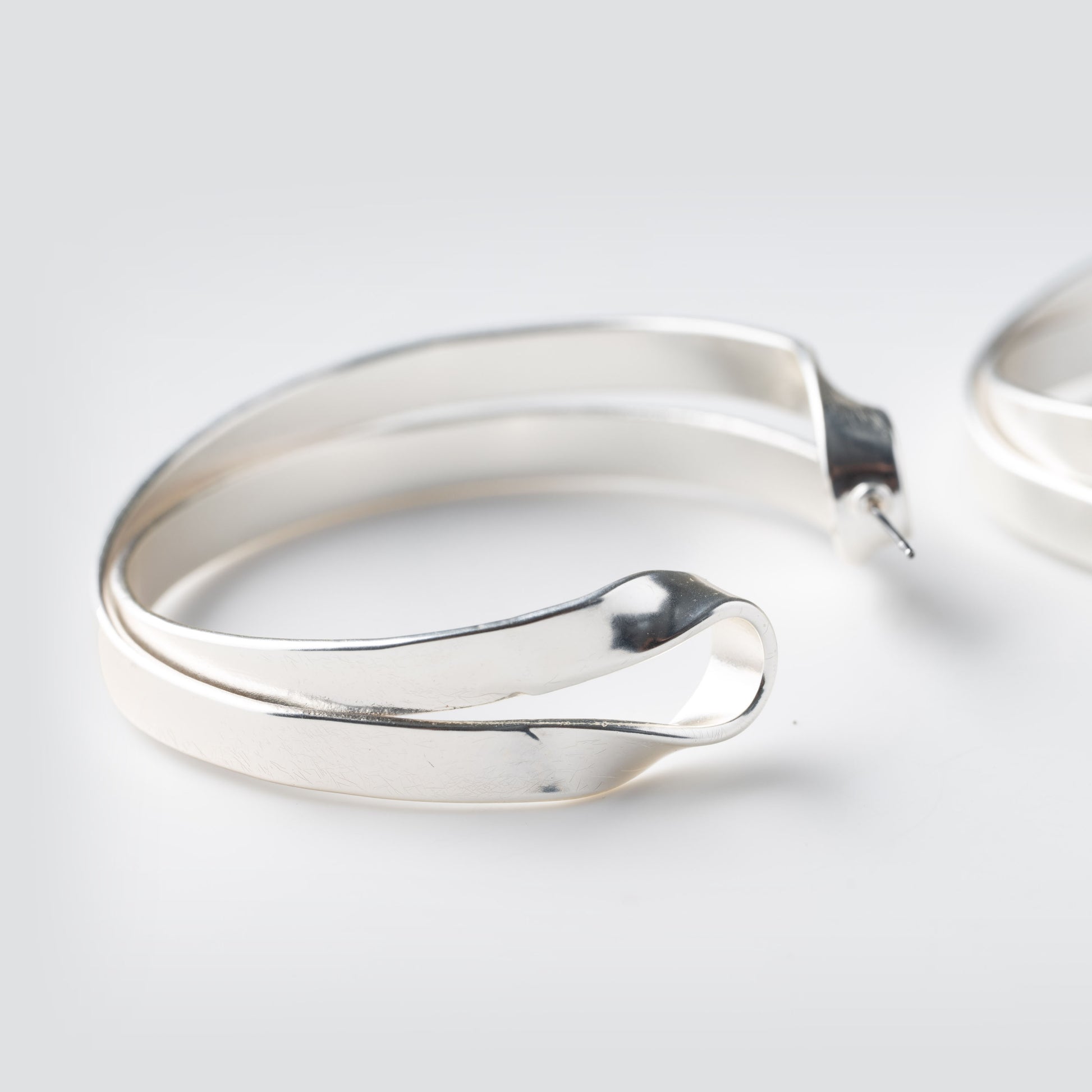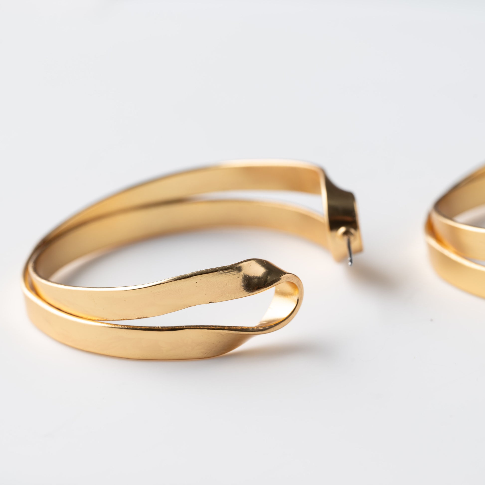 These gorgeous large split hoops are designed in a shiny ribbon that crisscross on the bottom, creating a stunning double style hoop, all in a bright polished finish. Hoop earrings are always in style! Add a touch of elegance and sophistication to your wardrobe with these distinctive hoops.