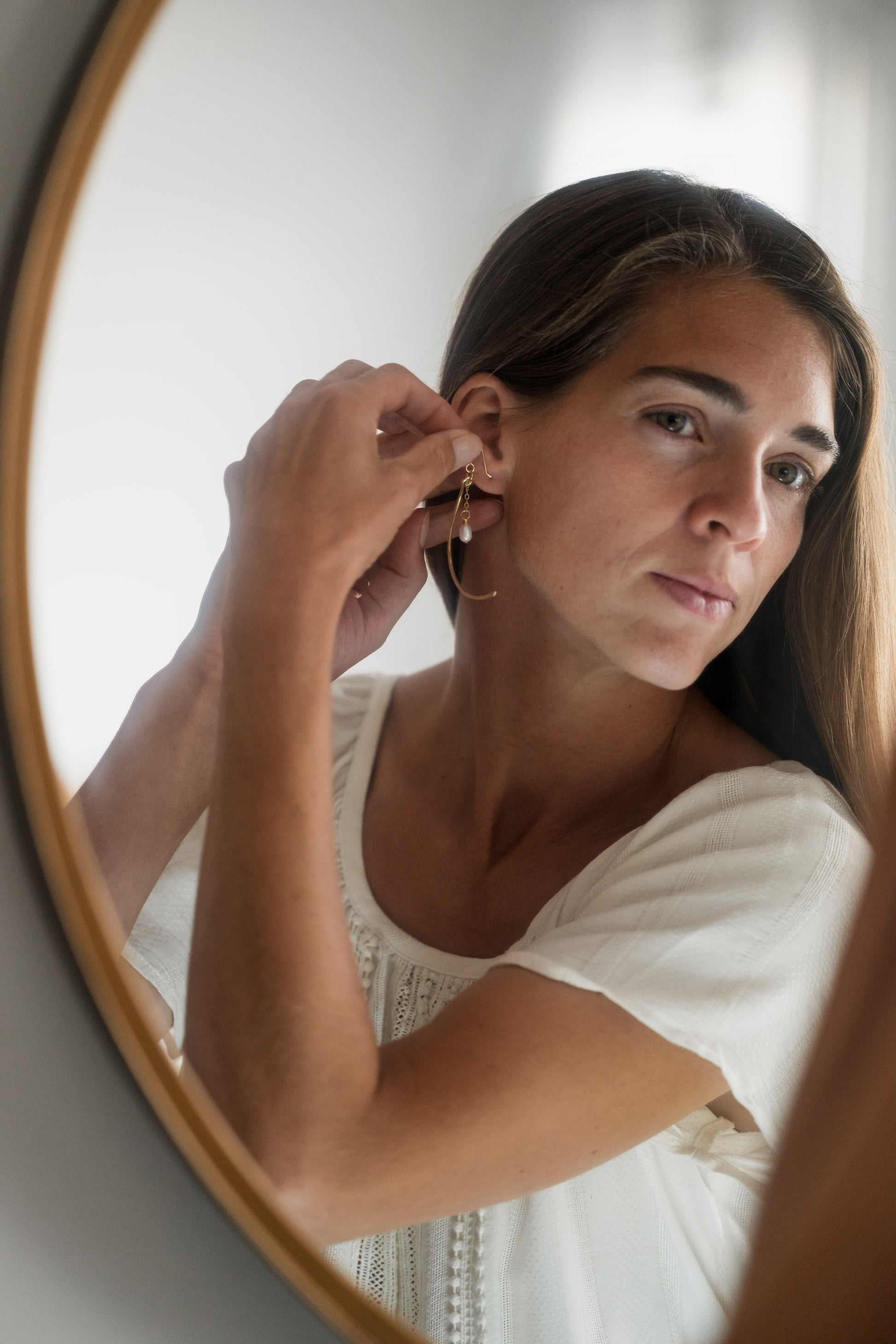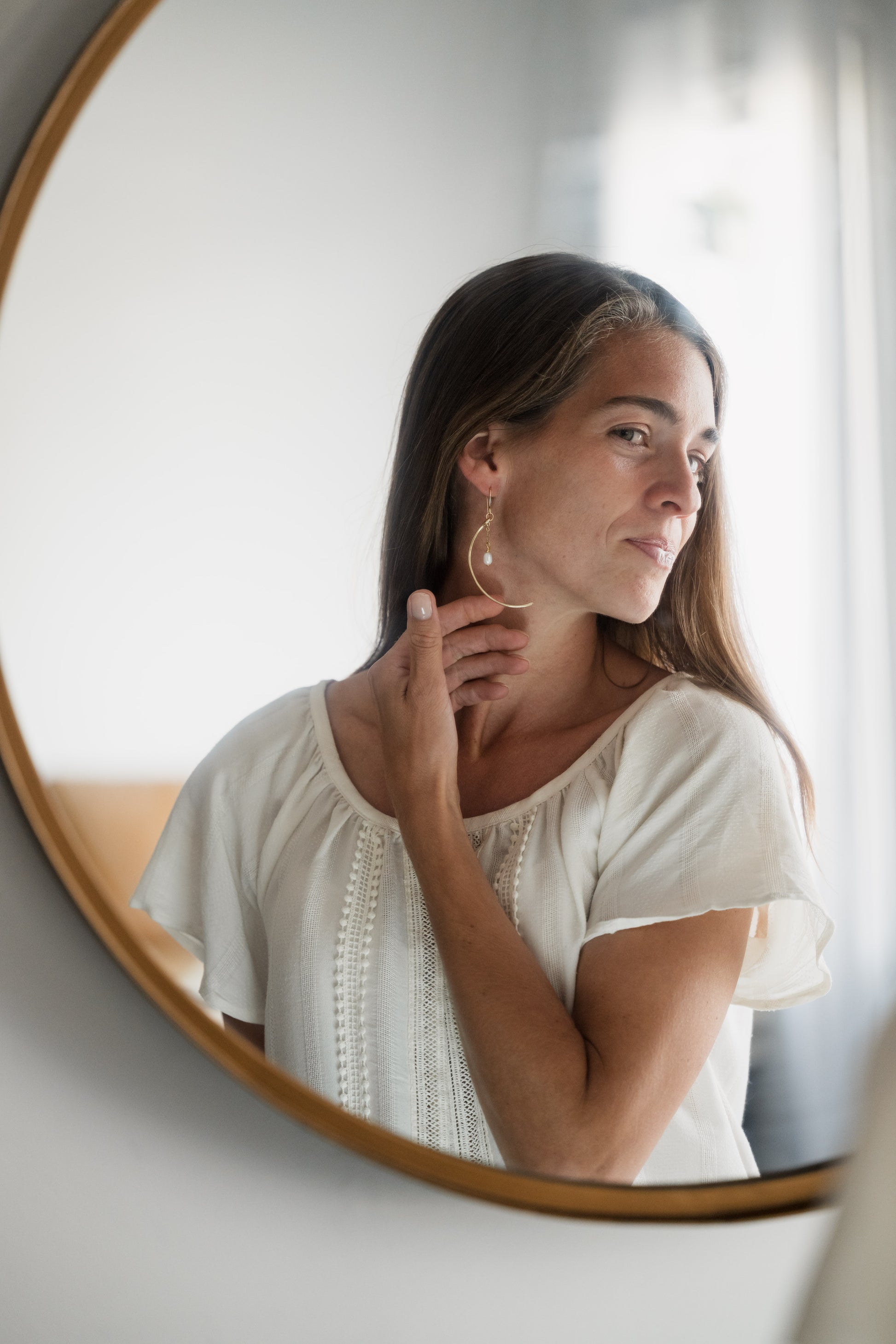 Delicate but strong are these stunning crescent moon shaped earrings with one simple freshwater pearl drop.