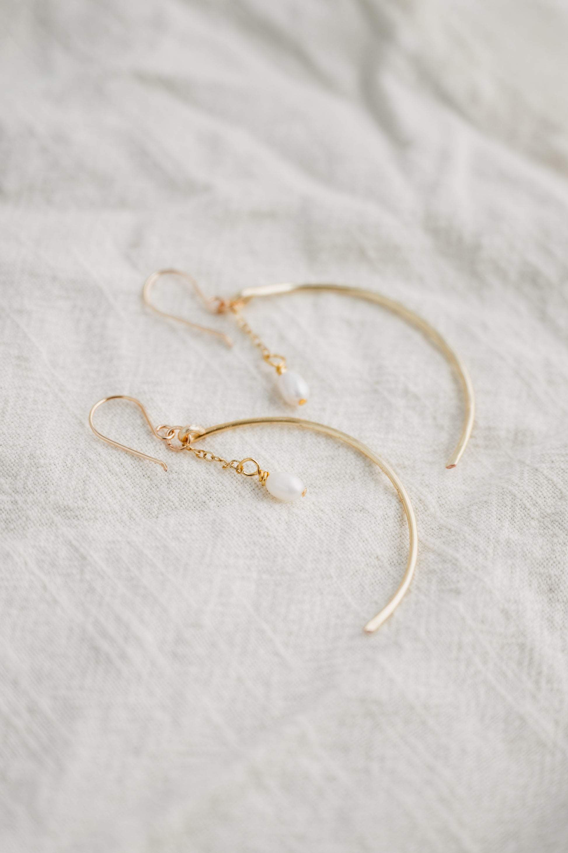 Hammered Crescent Pearl Earrings