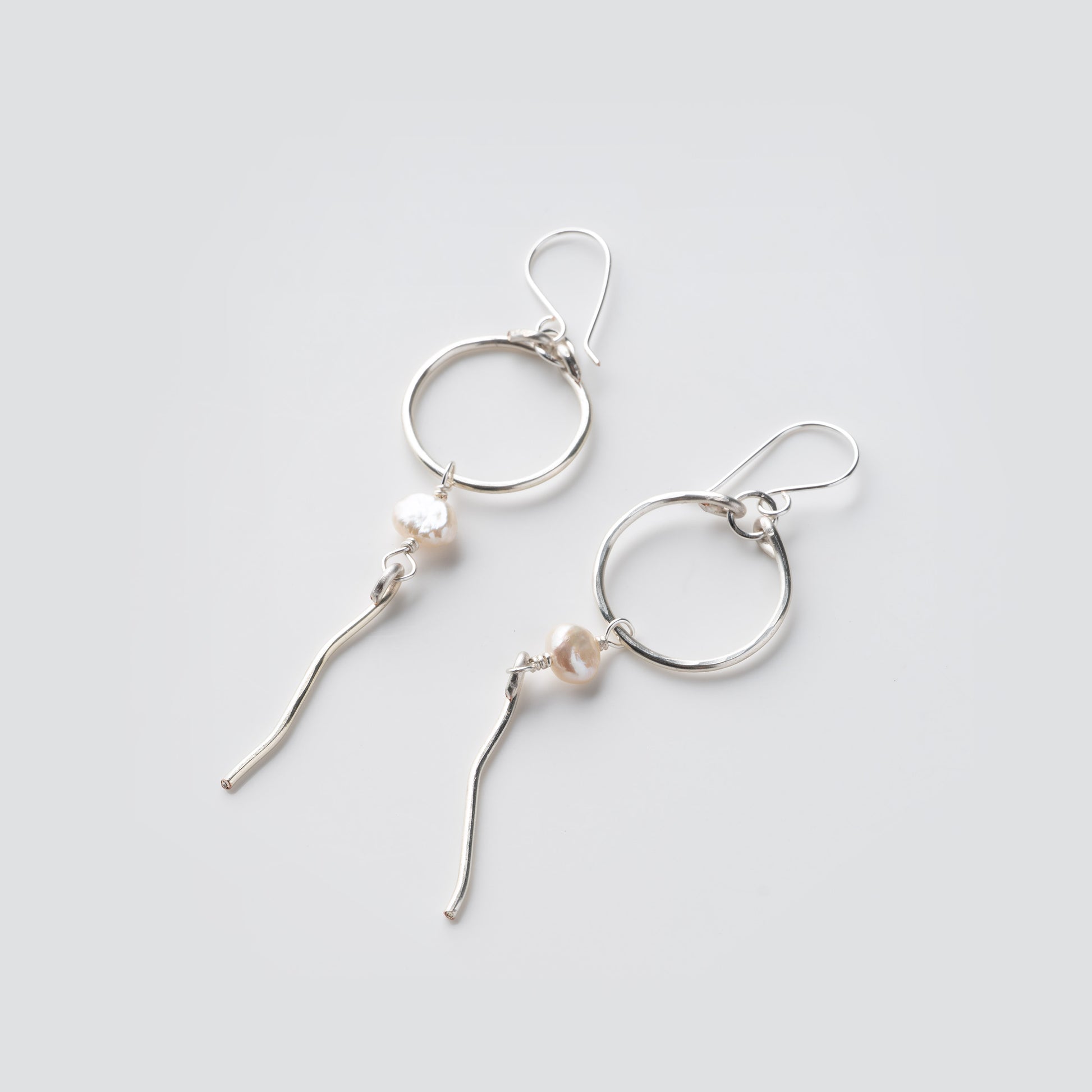 Hand forged and hammered classic hoops with a freshwater pearl.